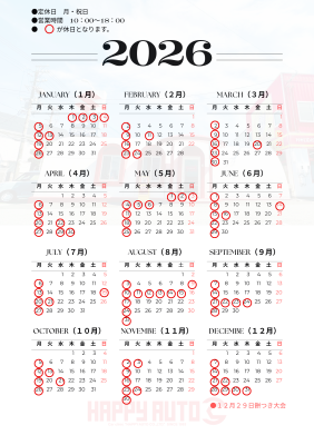 2026年は急な臨時休業以外は下に記載されているカレンダーの
